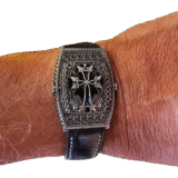 Made in Silver with Antique finish and a Genuine leather band.