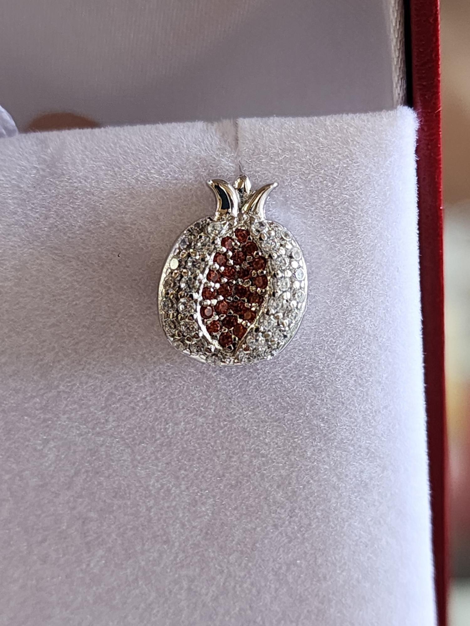 Our exquisite two-toned pomegranate necklace, a stunning piece of jewelry that effortlessly combines elegance and symbolism. Crafted with meticulous attention to detail, these earrings feature a pendant in the shape of a pomegranate fruit, adorned with two distinct tones that create a captivating visual contrast. The pomegranate represents abundance and good fortune making this the perfect gift for your loved ones.
