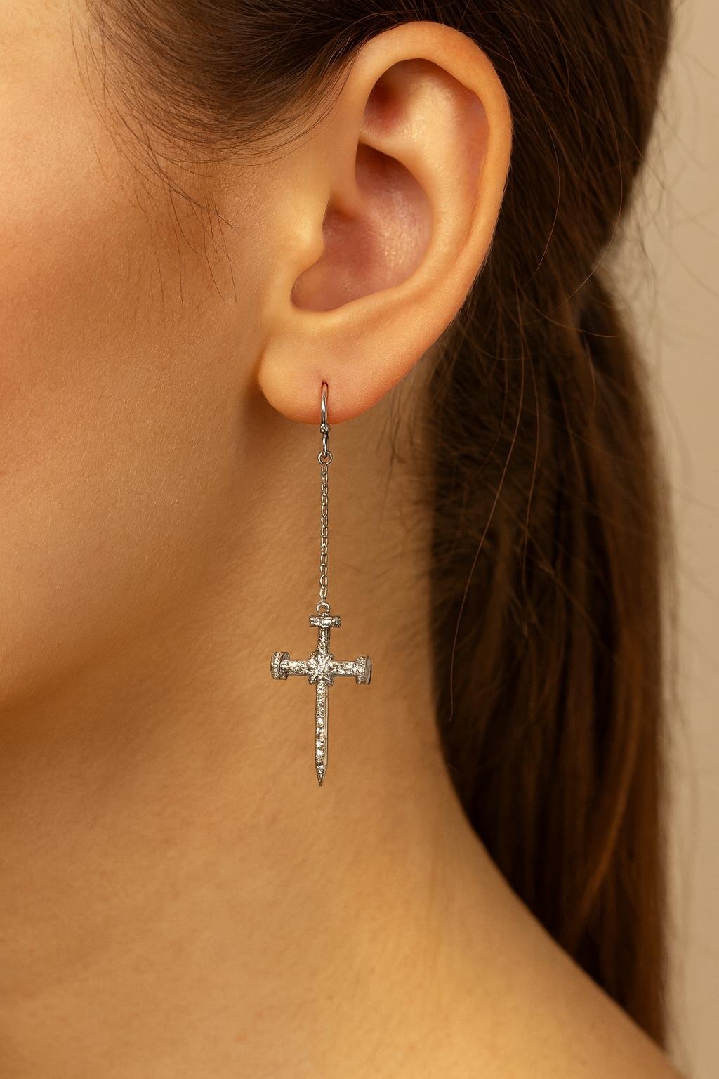 Pair your Nail Cross Pendant with our brand-new matching earrings