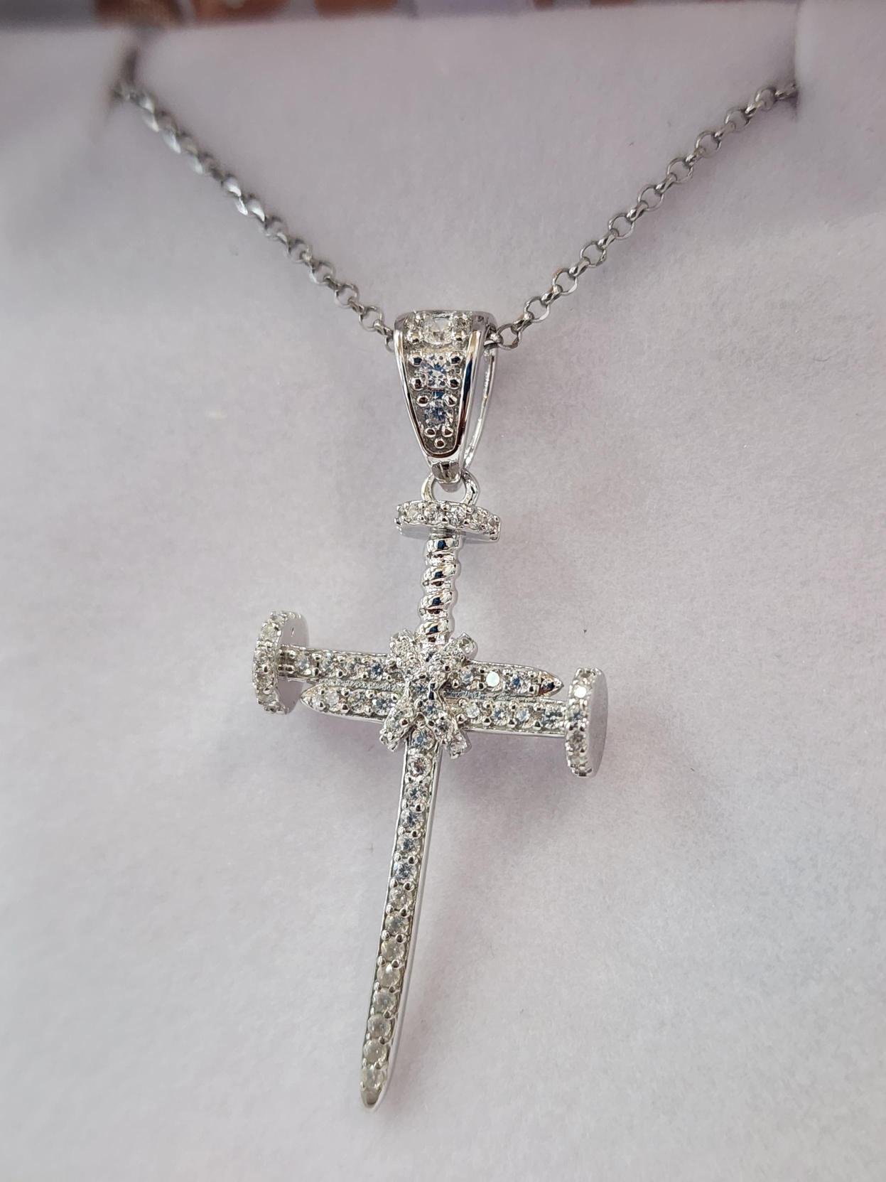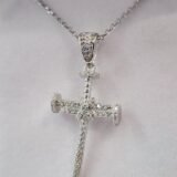 Nail Cross Silver Pendant – Micro Pavé Stone Setting