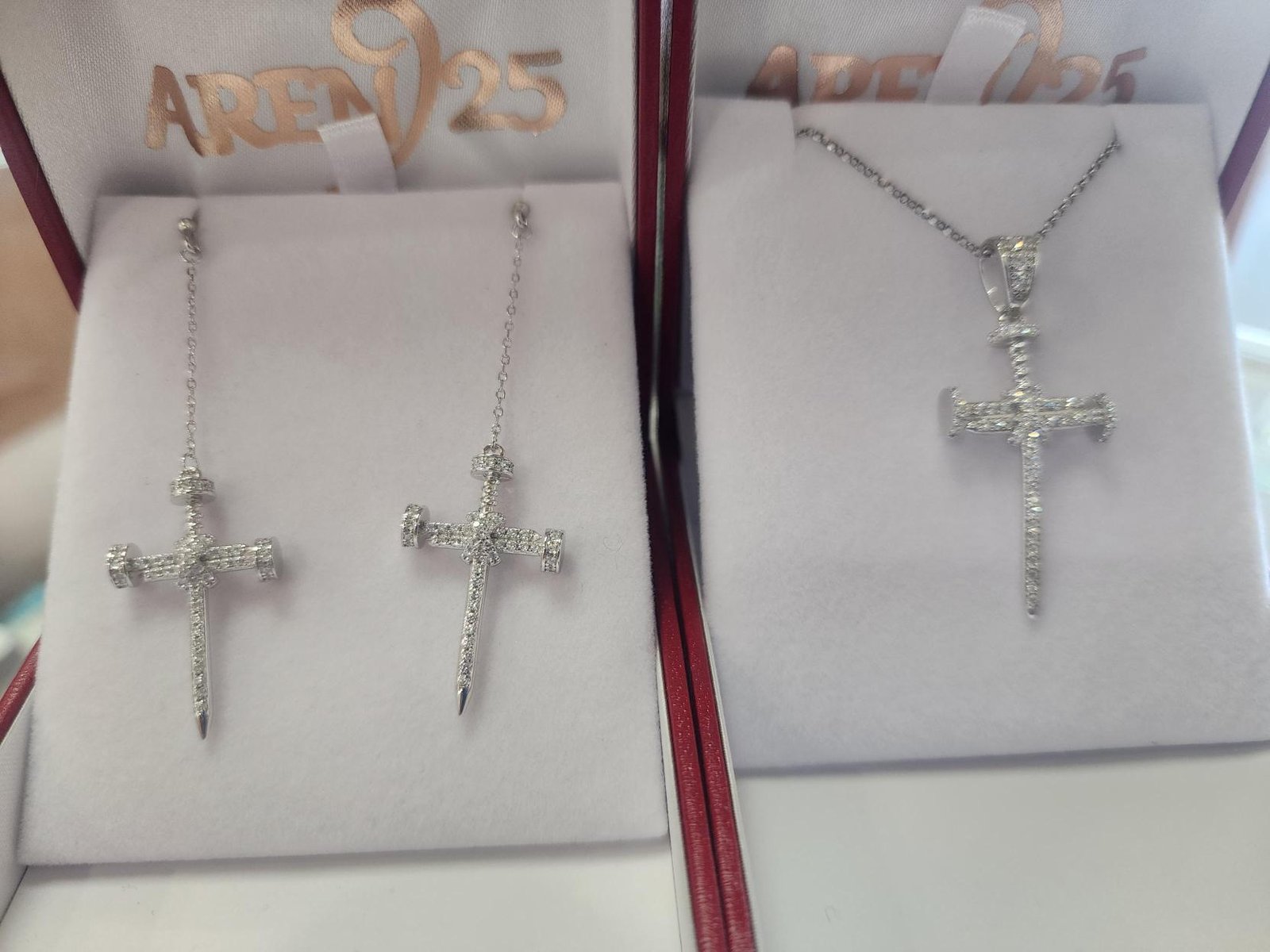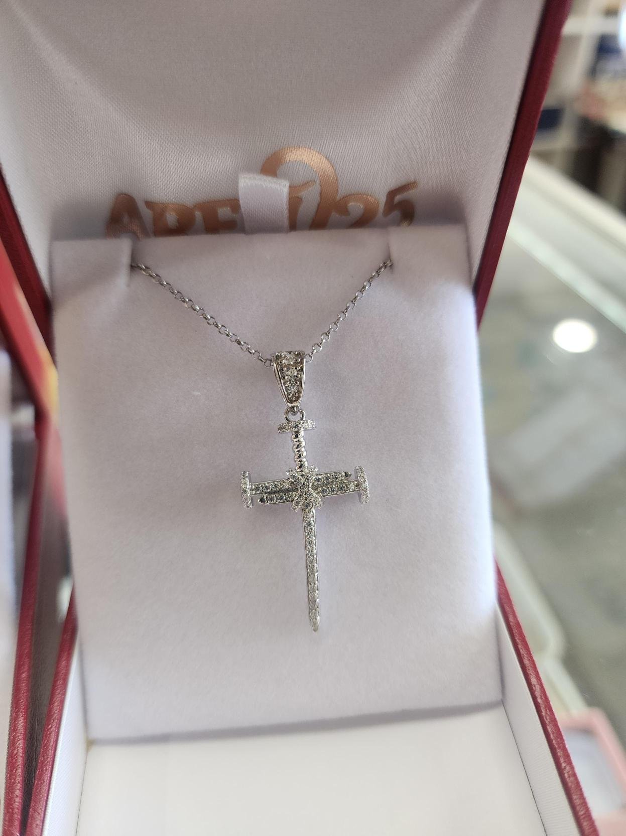 • Full micro-pavé stone setting on the cross, nail head, and bail