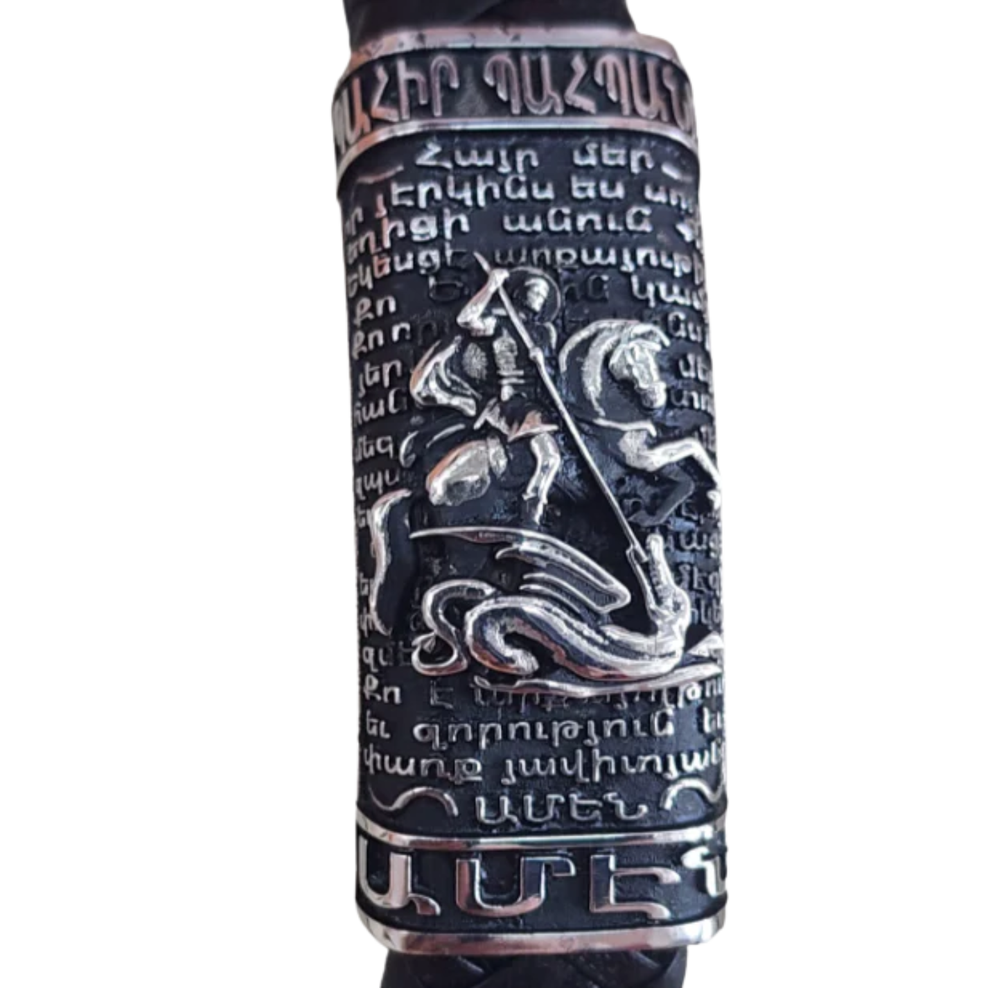 St. George and the Dragon Magnet leather in silver mounting. The story of St. George and the Dragon is a legendary tale that has been passed down through various cultures and traditions. While the details may vary, the core narrative typically involves a heroic figure named St. George who saves a town or kingdom from a fearsome dragon. The origins of the story can be traced back to ancient Greek and Roman mythology, where dragons were often depicted as powerful and malevolent creatures. Over time, the story of St. George and the Dragon became intertwined with Christian symbolism and beliefs. According to the most popular version of the story, St. George was a Roman soldier who lived during the 3rd century. He was known for his bravery and unwavering faith in Christianity. As the story goes, he arrived in a town plagued by a fearsome dragon that demanded human sacrifices. The townspeople, desperate for relief, offered their children as sacrifices to appease the dragon.